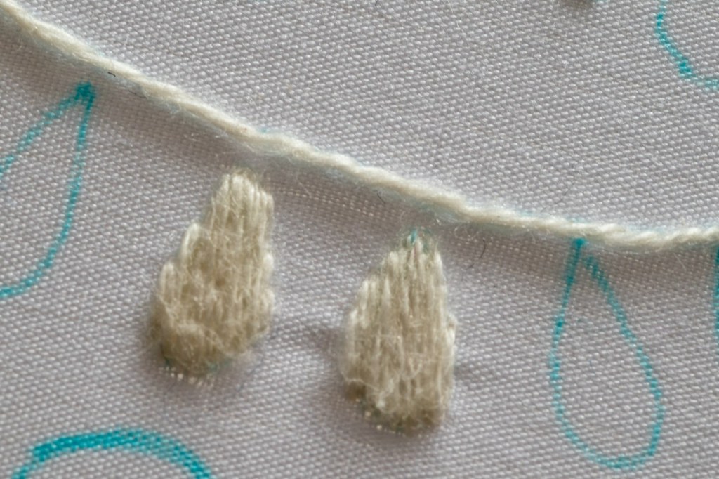 Satin and stem stitch are good old friends but I did find getting ‘sharp’ shapes with the moulinè more challenging than I expected. It’s such a fluffy, changeable thread that I found it didn’t always behave as expected and it can look very different after you give it a little stroke with the needle. This made it challenging to get good coverage of the thread shape.