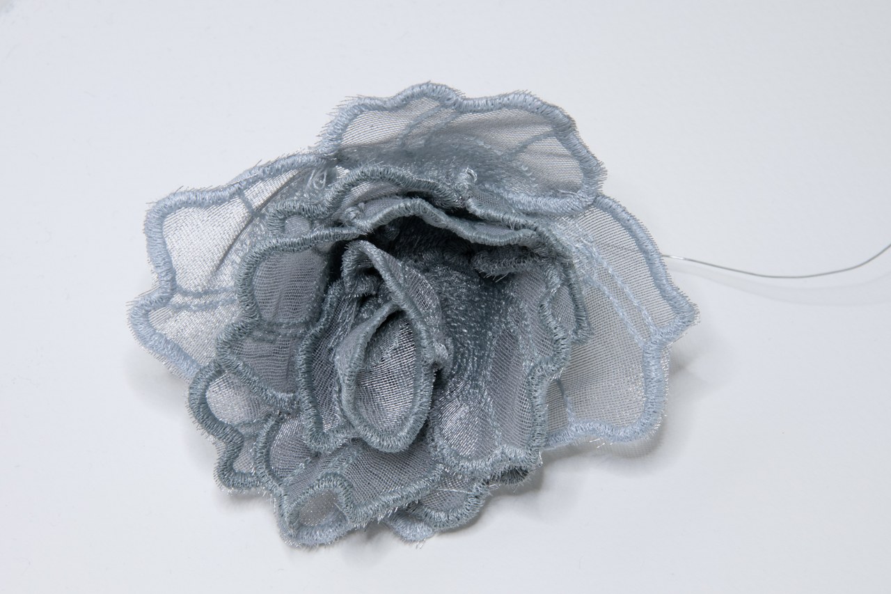 I’d wanted to have a go at working with organza on the machine and so when I came across this charming tutorial for a 3D Organza Rose complete with design. I liked the idea of getting to be lazy and not having to figure out the construction part so it seemed like a good challenge.