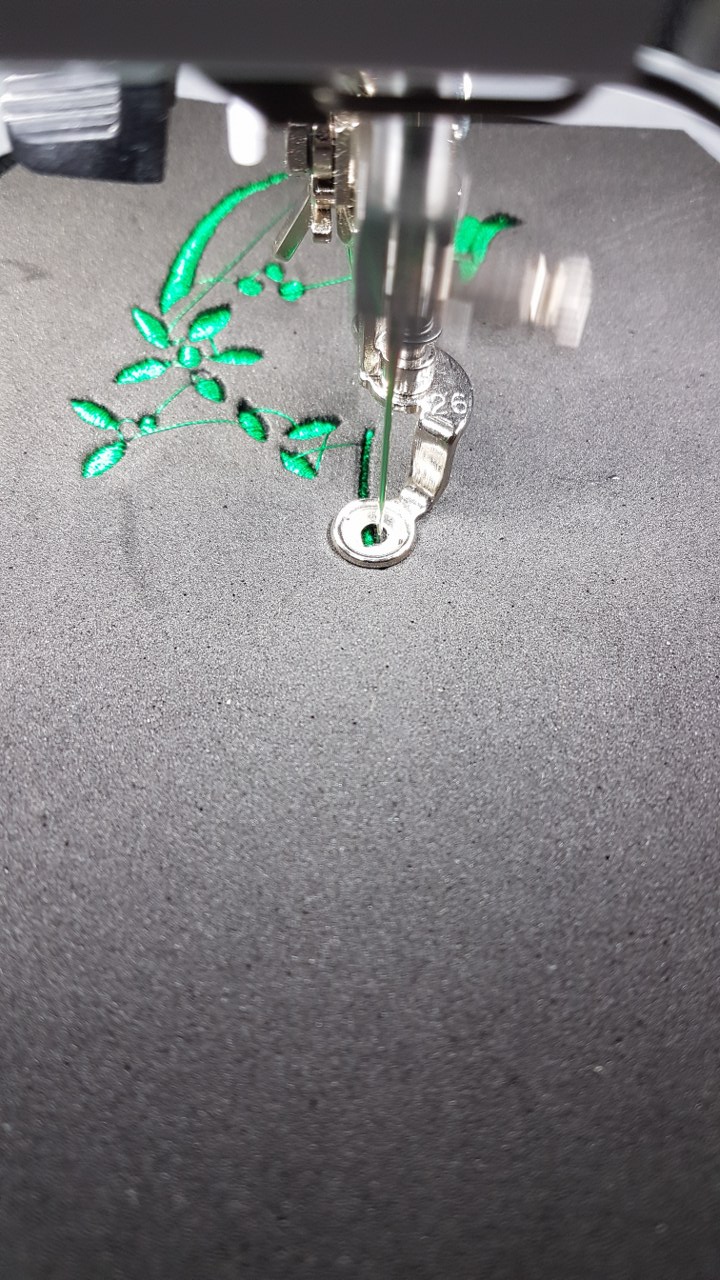 I’m getting a bit better at translating ‘screen size’ to reality and nearly successfully overexaggerated the gaps between the floral parts and lettering to ensure they did show as clear gaps on the finished design. This mostly worked okay. The other big challenge was really getting good stitch angles in to keep the flow of the shape. This is where I am so glad I have a traditional embroidery background because it really helps to see those lines and angles and has given me some strategies for dealing with the tricky ‘splits’ on the letters. They might look innocuous but it is quite hard to get a smooth transition from a single wide satin stitch to two individual branches, especially on foam where you can’t break the satin length at all without causing issues on the design height.