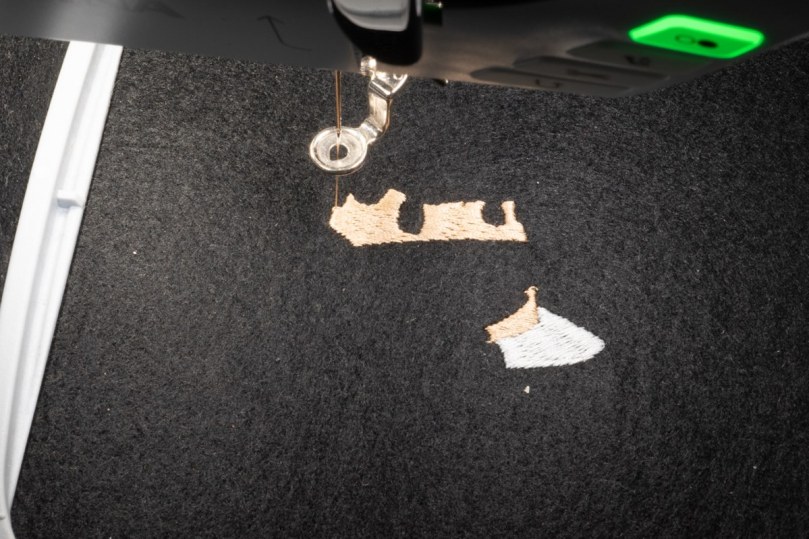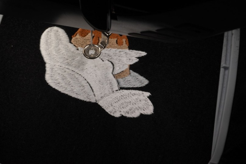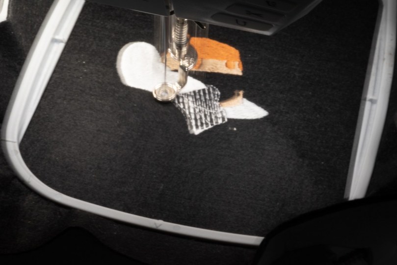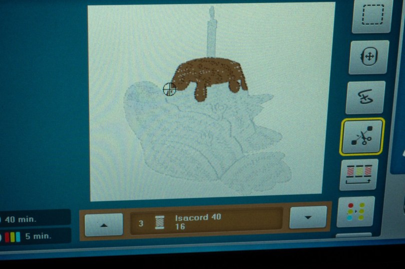 I could have ‘fanned’ the direction of the satin stitching more in the tail but there’s nothing too jarring. I also only had to run the design once which is immensely satisfying when it’s one of your own! I’m overall pretty pleased with it – maybe running some more underlay would have been worth it to get less of the underneath fabric showing or experimenting with the stitch density versus multiple layers of underlay. I feel the density is quite high as it is but maybe for extra smooth coverage it’ll be worth it.