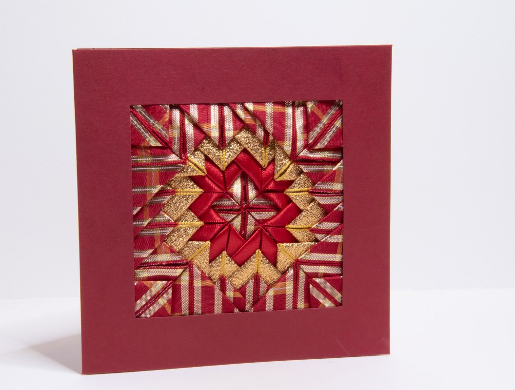 More cards, but a little bit of a different theme today – Somerset patchwork! Ribbons are wonderful, versatile things. You can wrap presents and decorate with them, embroider them to make particularly lovely looking flowers and cut them up and fold them over to may all sorts of fanciful shapes.